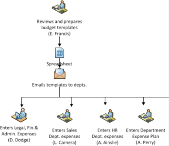 You may already have your workflow documented in some form, such as spreadsheets, reports, and other documents used in the current process. Capture the current workflow: gather the documents, identify who creates what, who approves, who notifies whom, etc. It might help to create a flow diagram, perhaps by starting on a whiteboard. Your aim is to capture all the steps, as well as the actors, their roles, and the documents created.