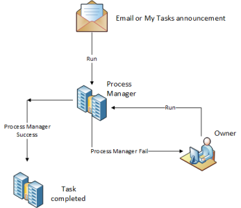 A workflow task that runs in Process Manager is known as a Process task. Similar to regular process groups, which can be run at specified times on a schedule, a Process task runs when the workflow meets the starting conditions of the task.