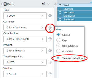 Tip: If the dimension is a column or a row, you can also right-click the column/row header and select Advanced.