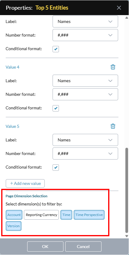 (Optional) For Page Dimension Selection click dimensions to add to the badge. (If this section does not appear, the data view has no page dimensions.)