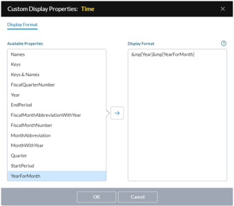 You use the Custom Display Properties dialog to define custom display formats for page dimension members.
