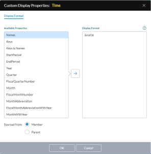 Note: You must perform the two previous steps before clicking ; after moving the property to Display Format, choosing a Sourced from option has no effect.