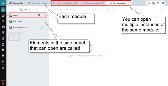 Each module opens in its own tab. You move between open features by clicking their tabs: