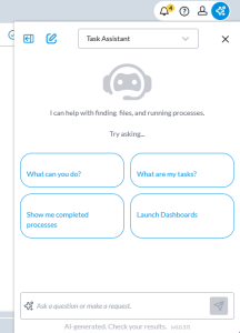 If you are a user of FP&A Plus, Task Assistant is a virtual assistant that you can use to complete tasks more efficiently using natural language. Task Assistant enables you to interact with the platform through conversational prompts to perform actions like opening files, distributing reports, or navigating to specific areas—streamlining workflows and reducing manual effort.